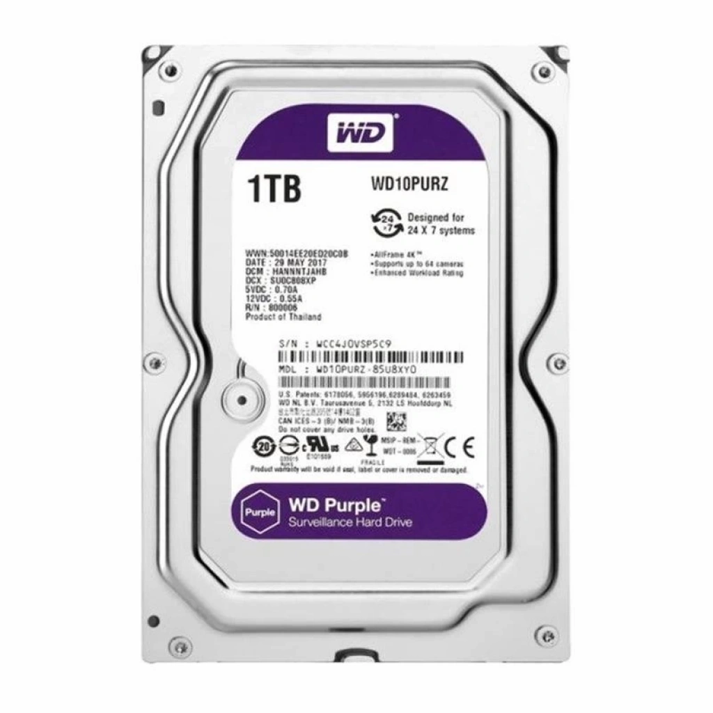 1 TB WD 3.5 PURPLE SATA3 5400RPM 64MB 7/24 GUVENLIK WD10PURZ (3 YIL RESMI DIST GARANTILI)