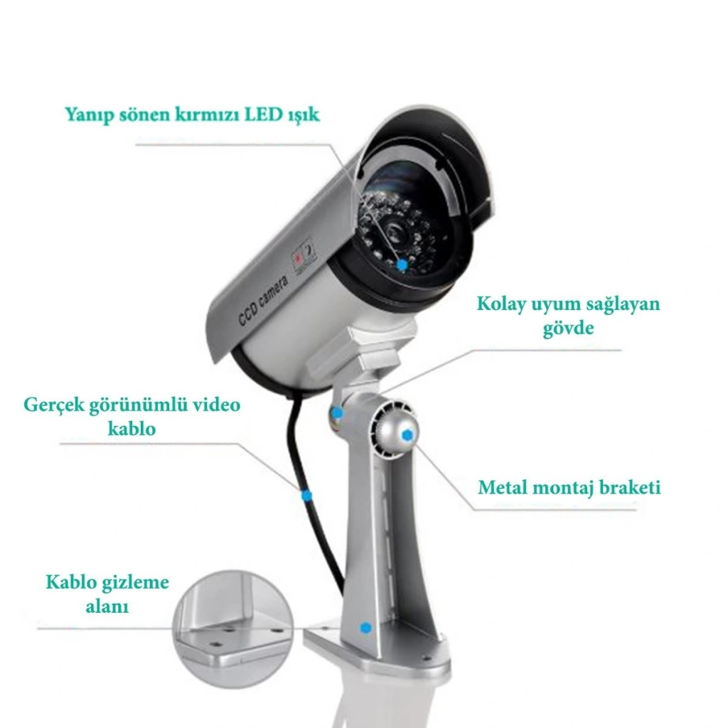Üzerindeki çoklu sahte kızıl ötesi led ışık ışığı her 5 saniyede bir yanıp söner ve geceleri görebileceği görünümü verir. Sahte video kablosu kameranın bir kamera kayıt cihazına bağlı olduğu görüntüsü verir.