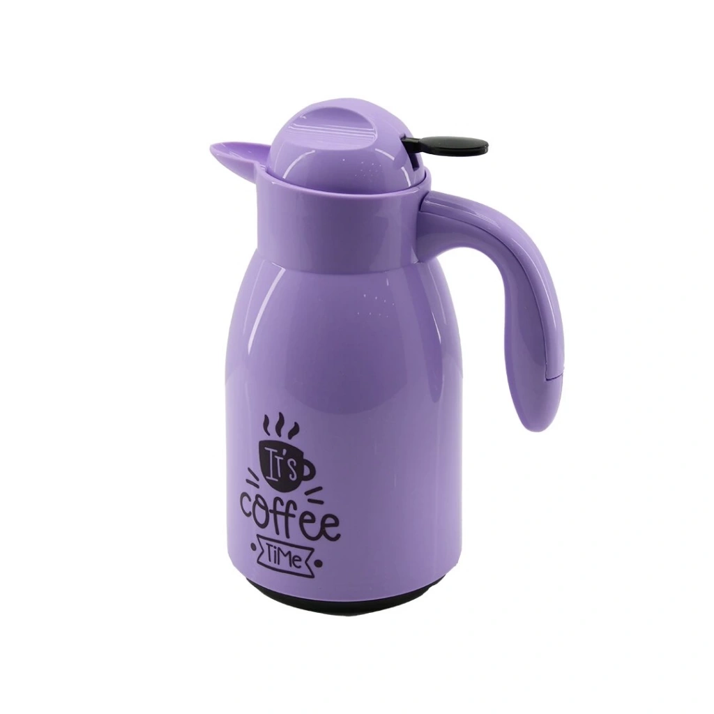 1LT İÇİ CAM LİLA - KAHVE YAZILI PENGUEN PLASTİK TERMOS (5148)