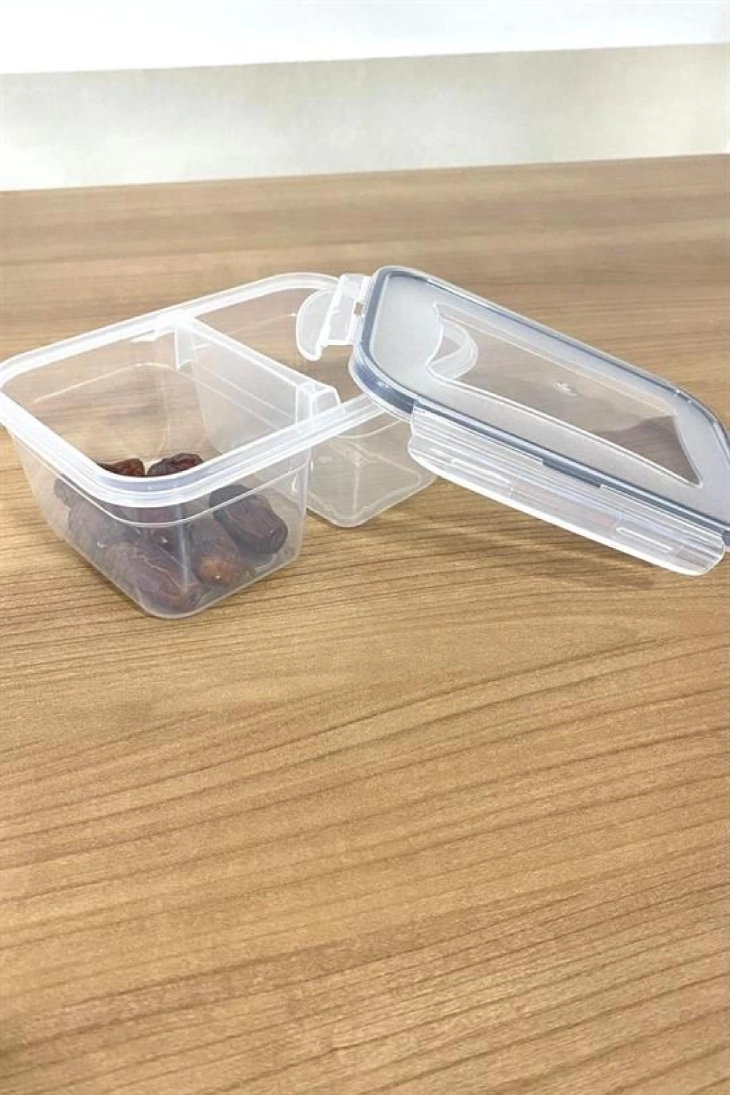 2 Bölmeli 0,45+0,45 Litre Kilitli Kapaklı Erzak Saklama Kabı Diyet Saklama Kabı Taşınabilir Beslenme Kabı