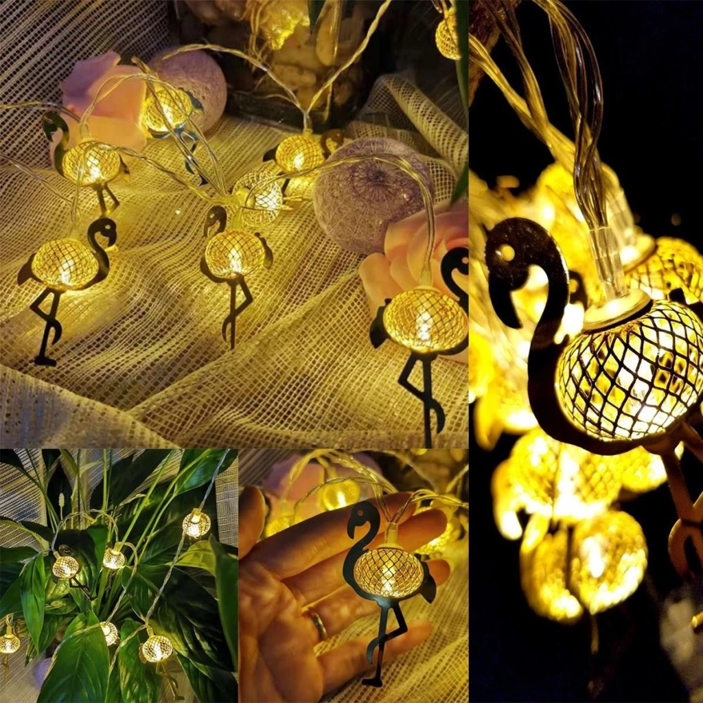 10'lu Dekoratif Metal Flamingo Şerit Led Aydınlatma (2 Metre)