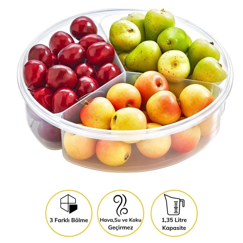 3 Bölmeli Sızdırmaz Contalı Kilitli Kapaklı 1,35 Litre yuvarlak Erzak Saklama Kabı LC-500 (5148)