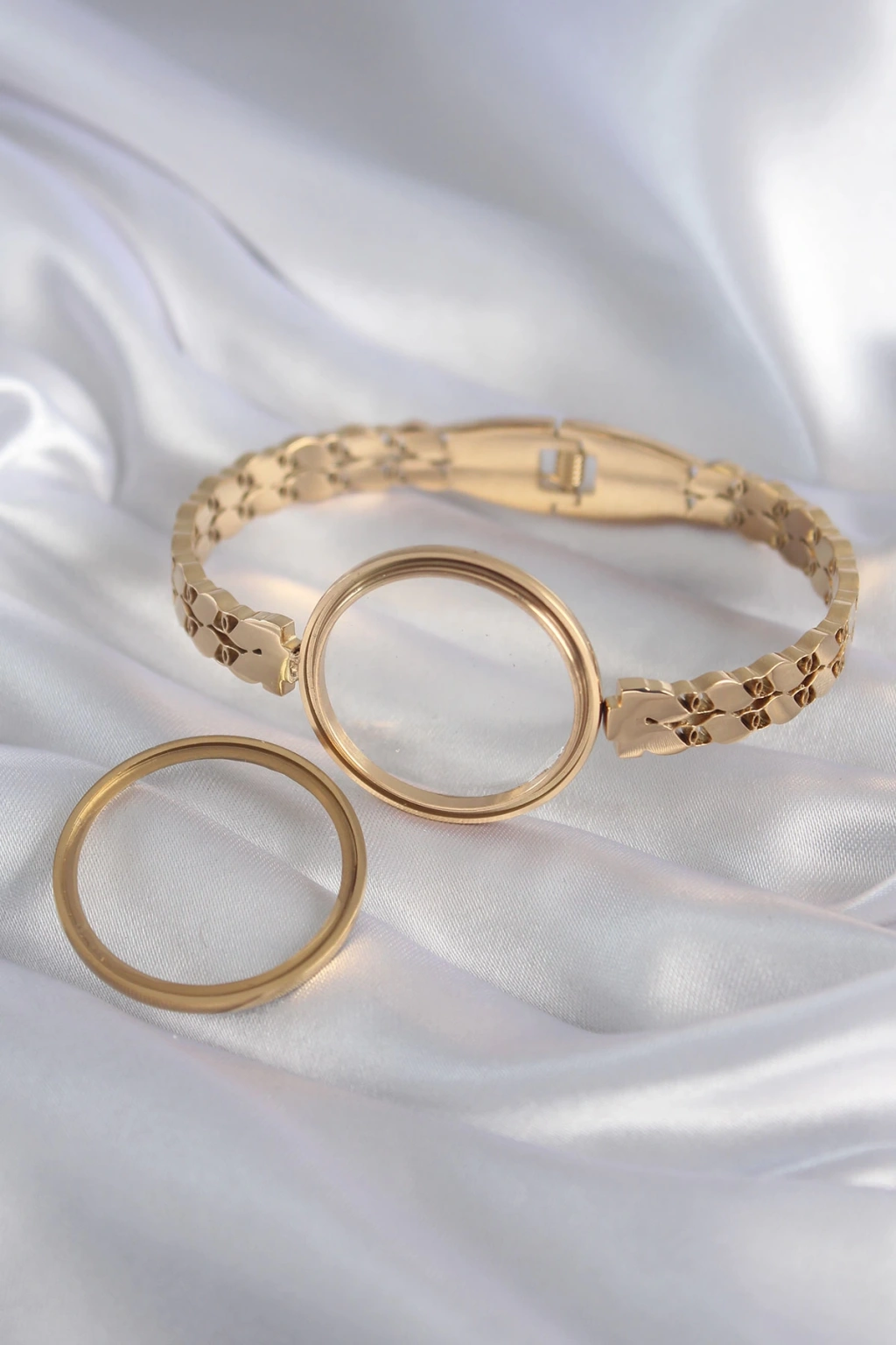 316L Çelik Gold Renk Arpa İşleme Açılabilir Fanus Model Kadın Kelepçe - TJ-BB5911