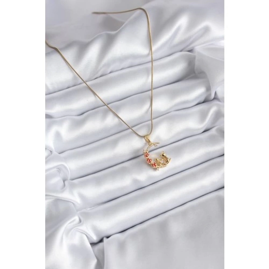 316L Çelik Gold Renk Hilal Kedi Model Zirkon Taşlı Detay Kadın Kolye - TJ-BKO8140