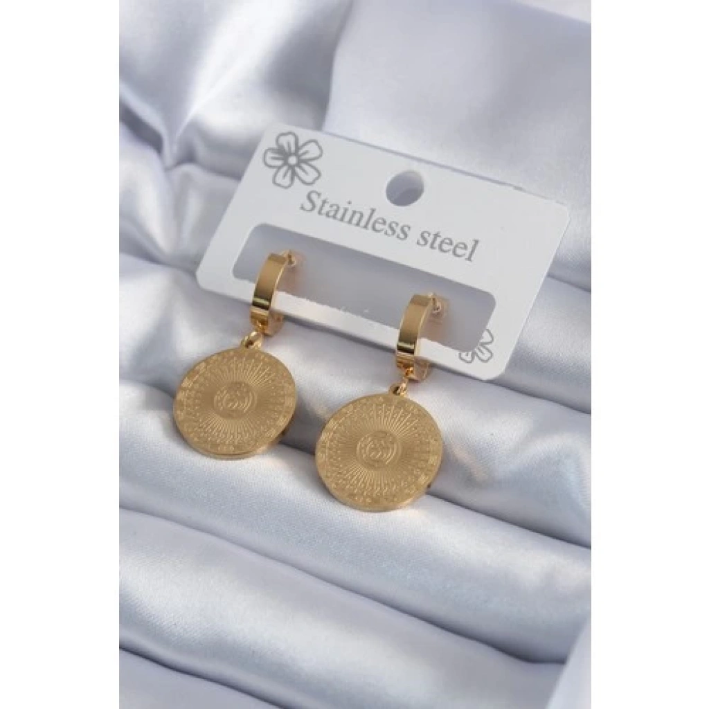 316L Çelik Gold Renk Işlemeli Halka Model Kadın Küpe - TJ-BKP7890