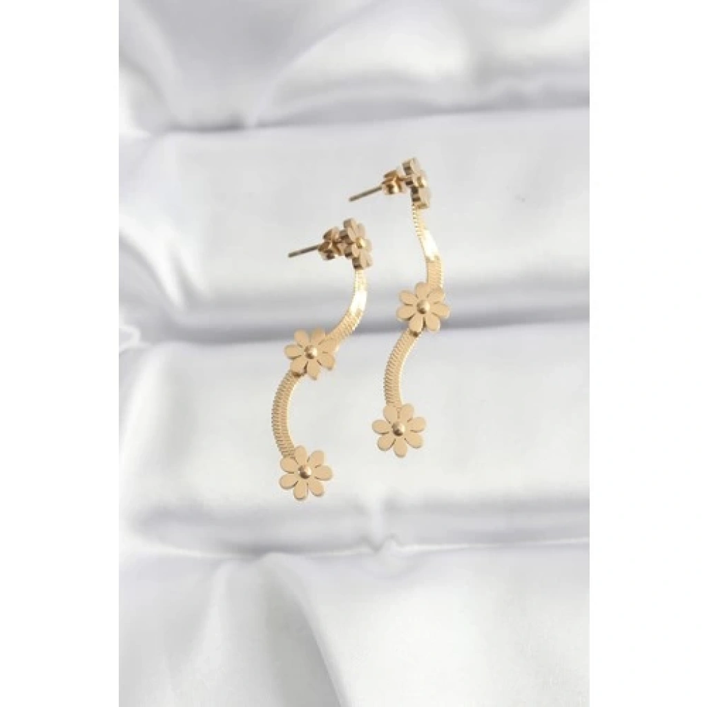 316L Çelik Gold Renk Italyan Zincir Papatya Küpe - TJ-BKP8801
