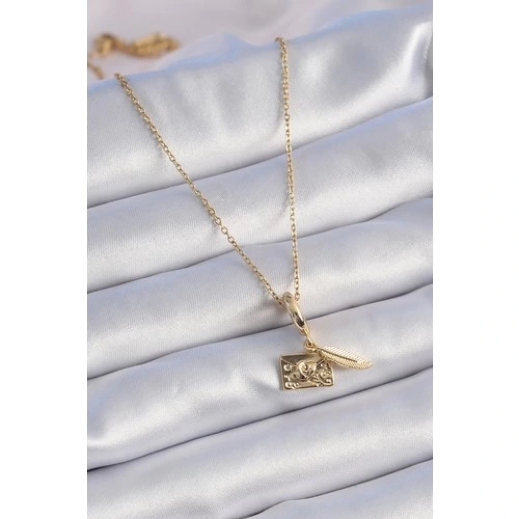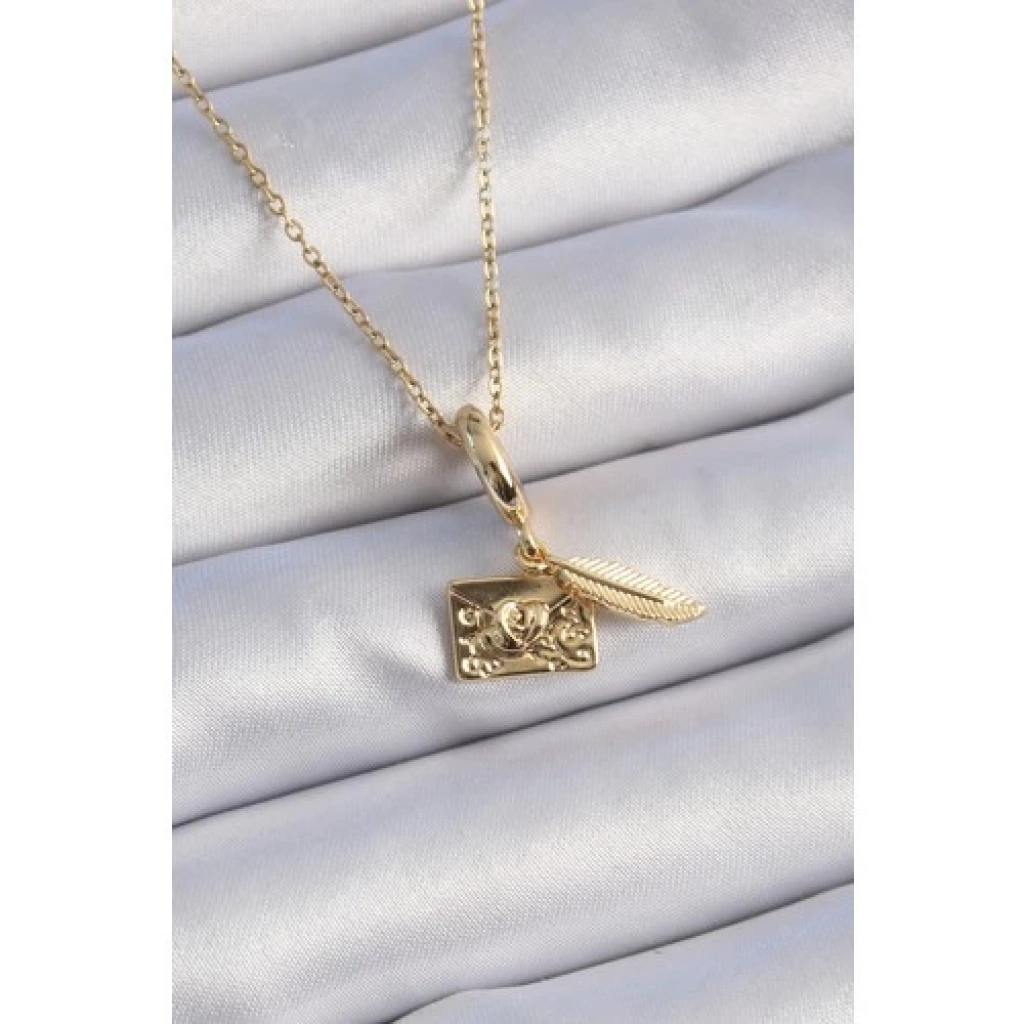 316L Çelik Gold Renk Kalp Detay Mektup Figür Charm Model Kadın Kolye - TJ-BKO9314
