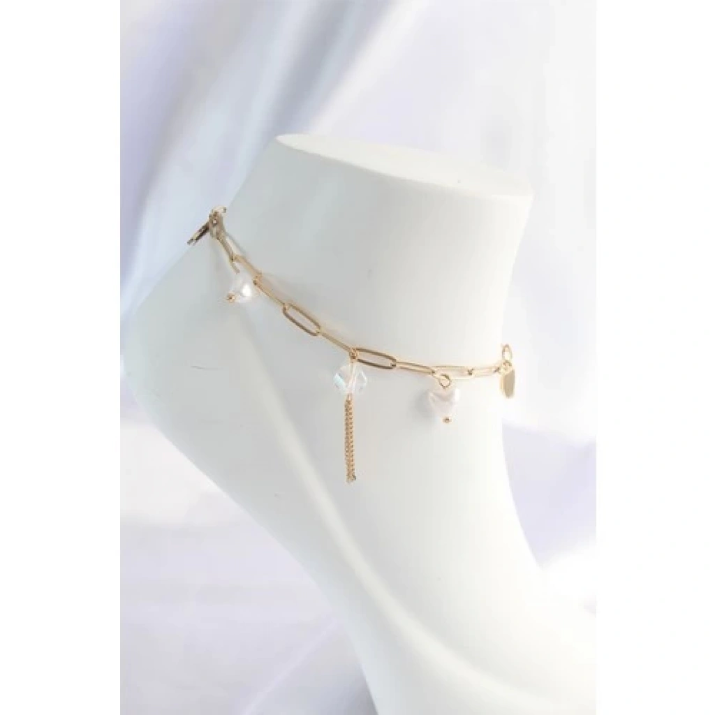 316L Çelik Gold Renk Beyaz Kalpli 2li Halhal - TJ-HH1584