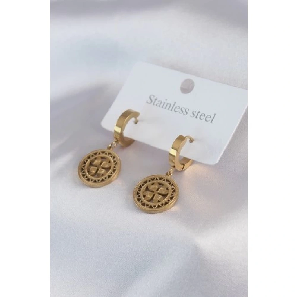 316L Çelik Gold Renk Pentagram Işleme Model Kadın Küpe - TJ-BKP7979
