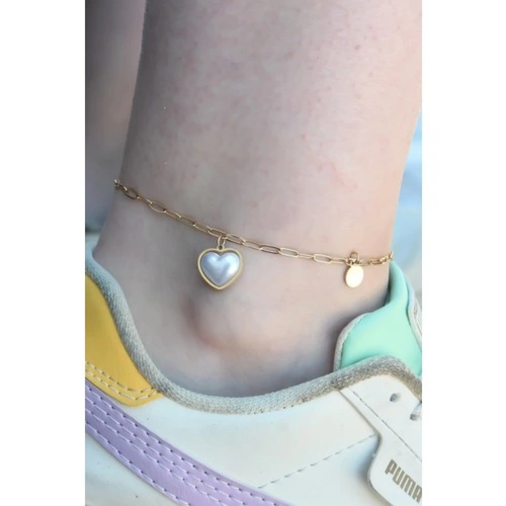 316L Çelik Gold Renk Kalp Model Kadın Halhal - TJ-HH1493
