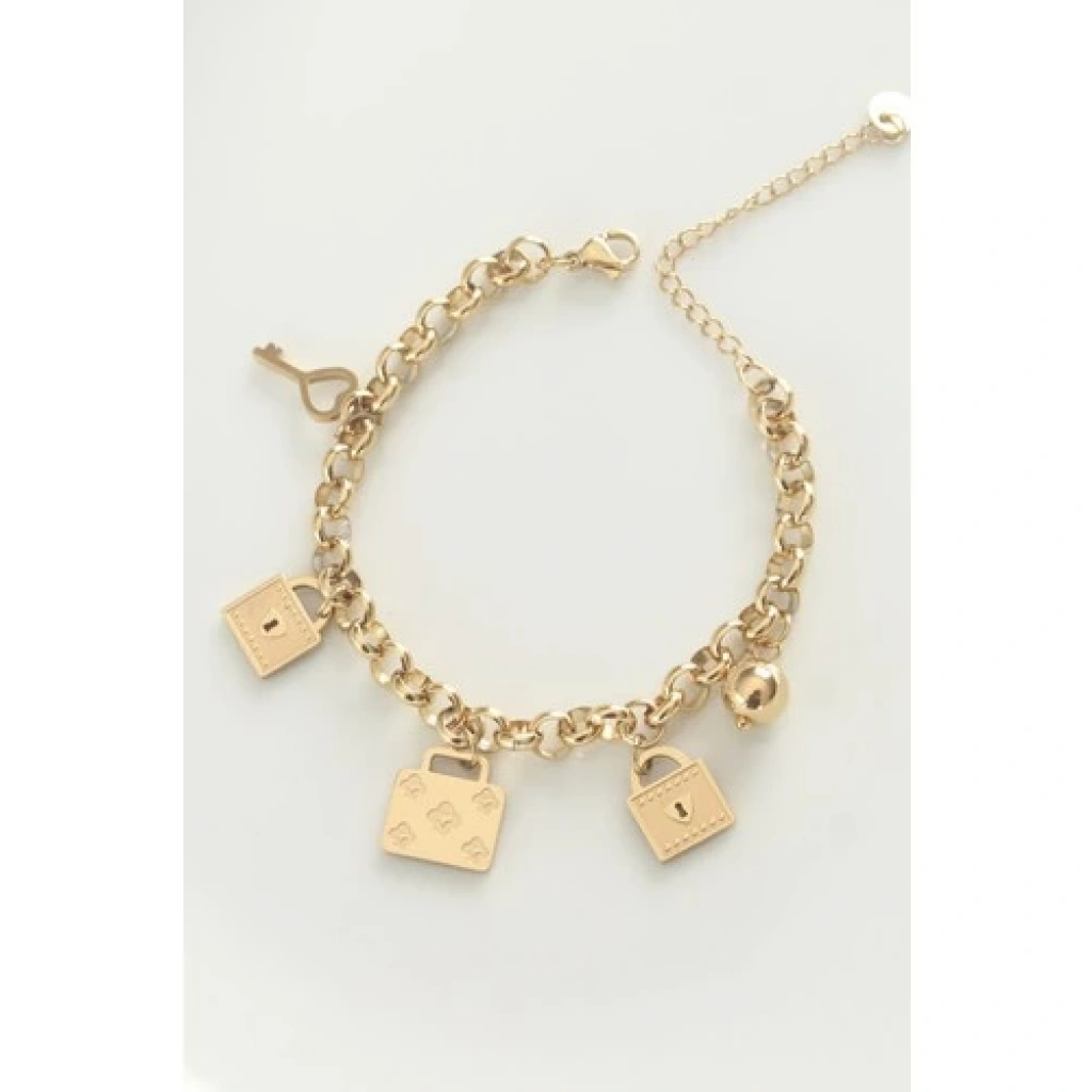 316L Çelik Gold Renk Karışık Aksesuarlı Oval Zincir Bileklik - TJ-BB6038