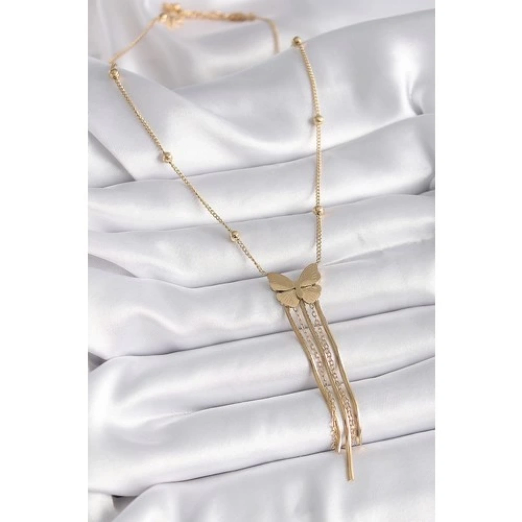 316L Çelik Gold Renk Kelebek Figür Sallantı Italyan Zincirli Kadın Kolye - TJ-BKO9406