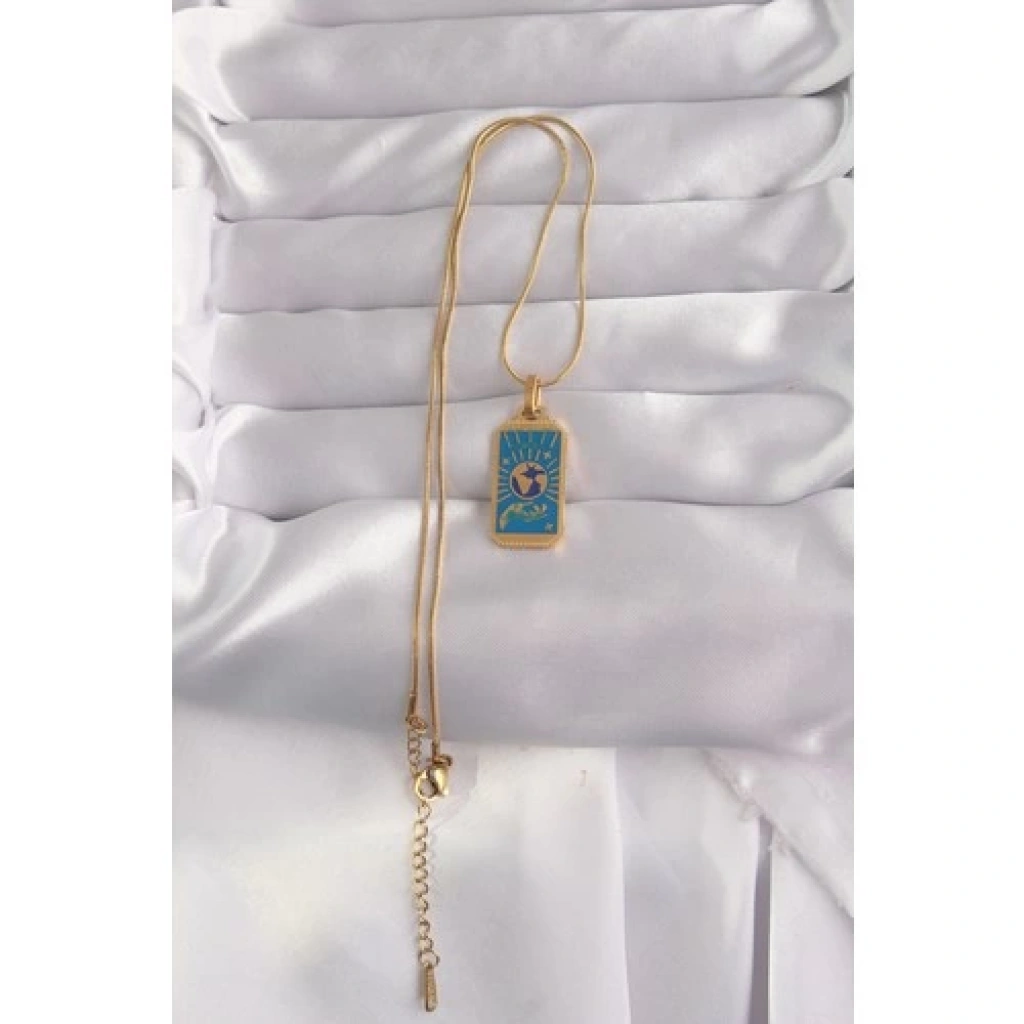 316L Çelik Gold Renk Mavi Mineli Tarot Kolye - TJ-BKO9030