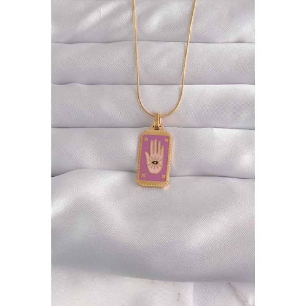 316L Çelik Gold Renk Mor Mineli El Figür Tarot Kolye - TJ-BKO9034