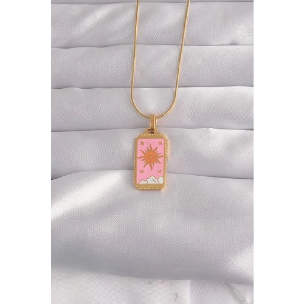316L Çelik Gold Renk Pembe Mineli Güneş Model Tarot Kolye - TJ-BKO9029