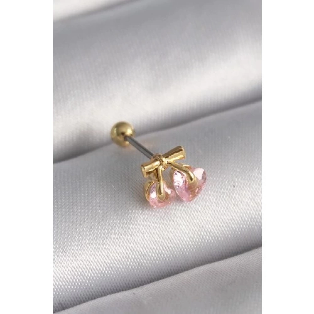 316L Çelik Gold Renk Pembe Zirkon Taşlı Kalp Tragus Piercing - TJ-PR1234