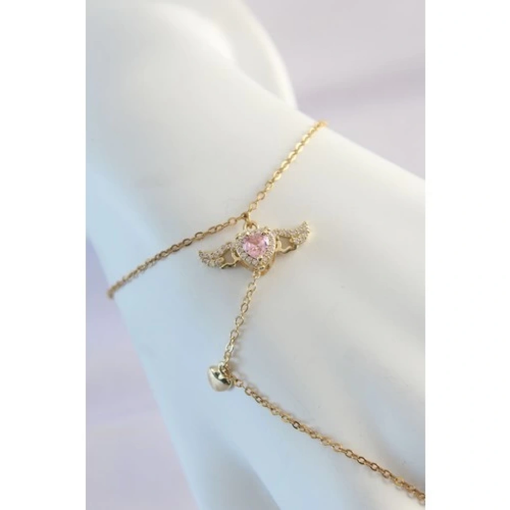 316L Çelik Gold Renk Pembe Zirkon Taşlı Kanatlı Kalp Model Şahmeran - TJ-SN585