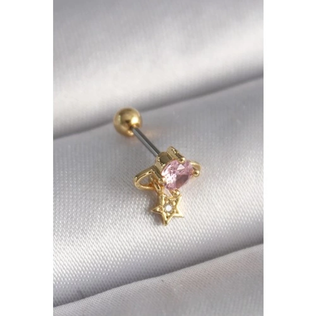 316L Çelik Gold Renk Pembe Zirkon Taşlı Sallantı Yıldız Detay Tragus Piercing - TJ-PR1236