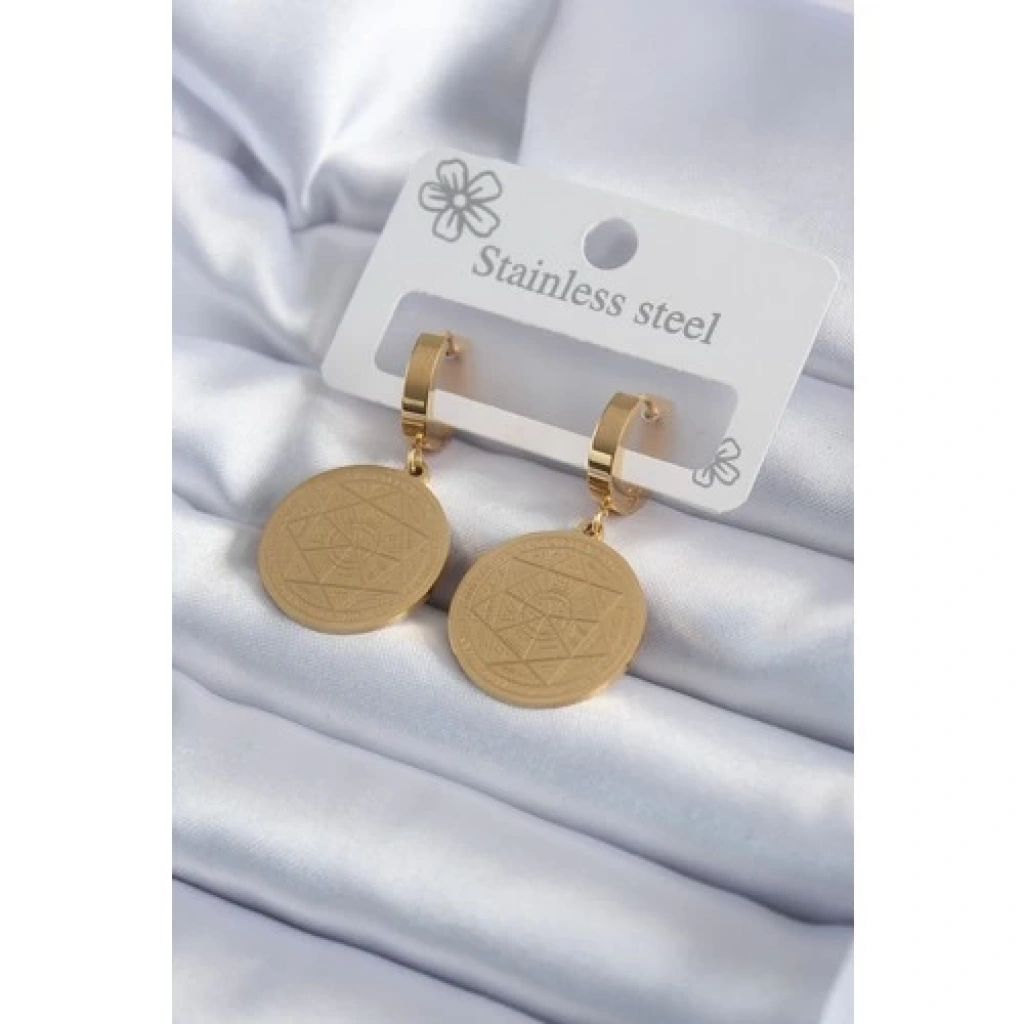316L Çelik Gold Renk Pentagram Işleme Model Kadın Küpe - TJ-BKP7975