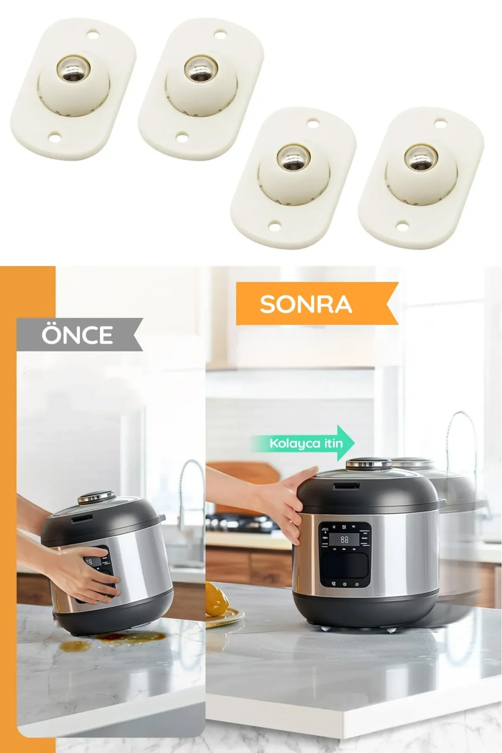 - Kullanım Şekli: - Taşımak istediğiniz mobilyanın köşelerinden hafifçe kaldırarak tekerlekli parçaları yerleştirin.