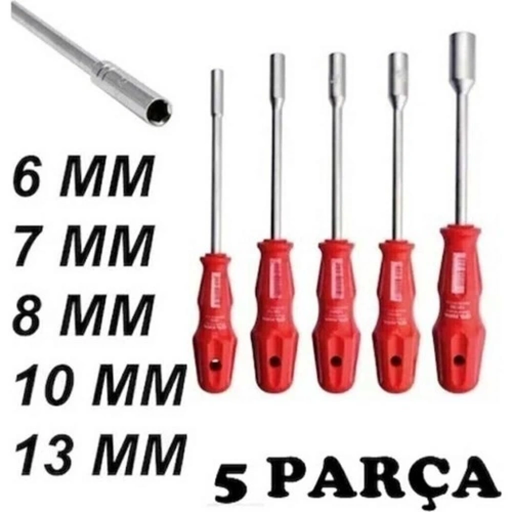 5 Adet Lokma Anahtar Tornavida 6/7/8/10/13/mm Metal Altıgen