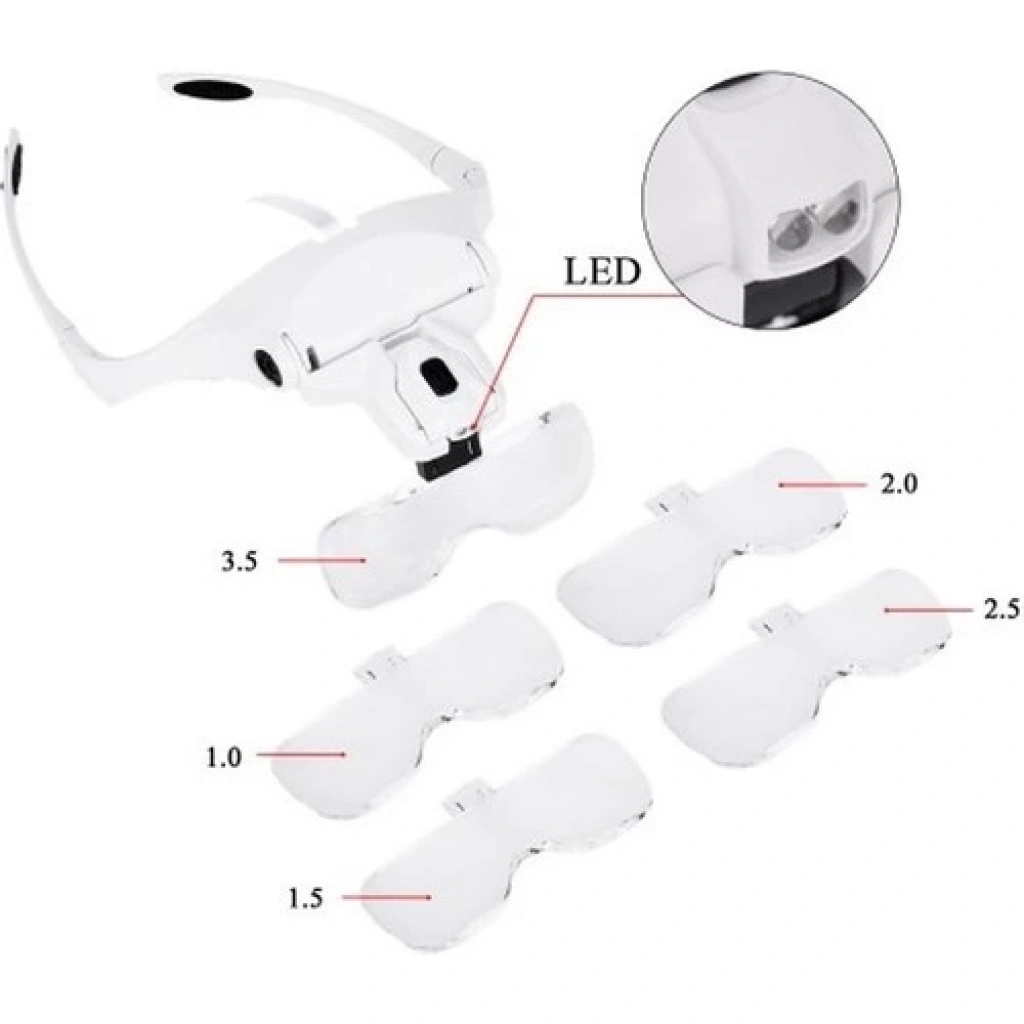 5 Lens 1.0x-3.5x 2led Işıklı Ile Ayarlanabilir Gözlük Büyüteç 9892B2