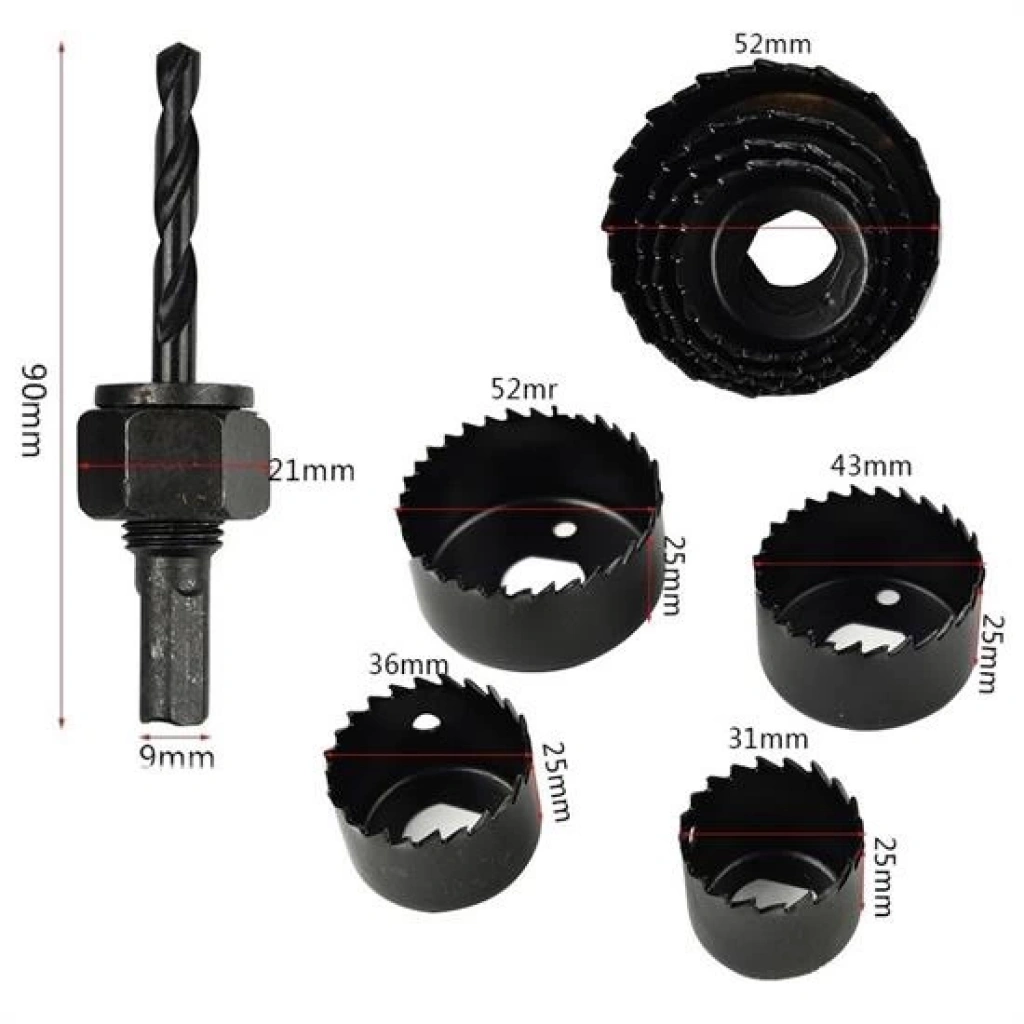 Çok Yönlü Delme Seti: 6 Parça Demir Ahşap Alçıpan Delme Buat Açma Seti, geniş uygulama alanına sahip bir araç setidir. Ahşap, demir ve alçıpan gibi farklı malzemelerde delme işlemlerini kolaylıkla gerçekleştirebilirsiniz. Yüksek performansıyla güvenilir sonuçlar elde etmenizi sağlar.