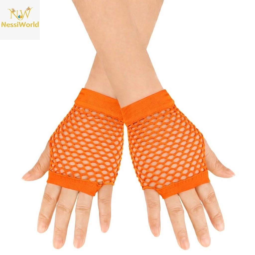 Timion 80’ler 90’lar Retro Neon Turuncu File Parmaksız Kısa Eldiven 11 cm