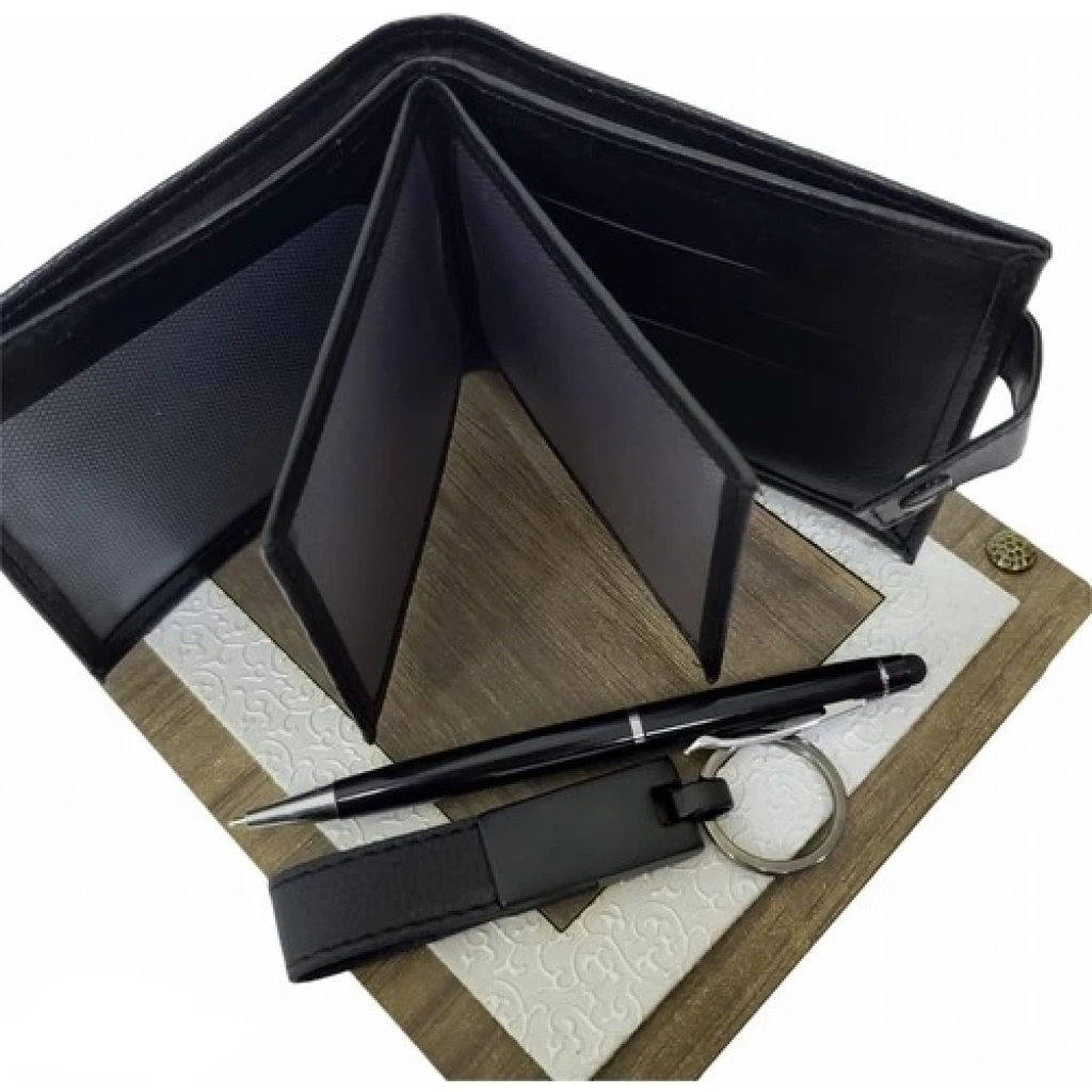 Ahşap Kutulu Erkeğe 3'lü Kalem Cüzdan Anahtar Hediye Seti