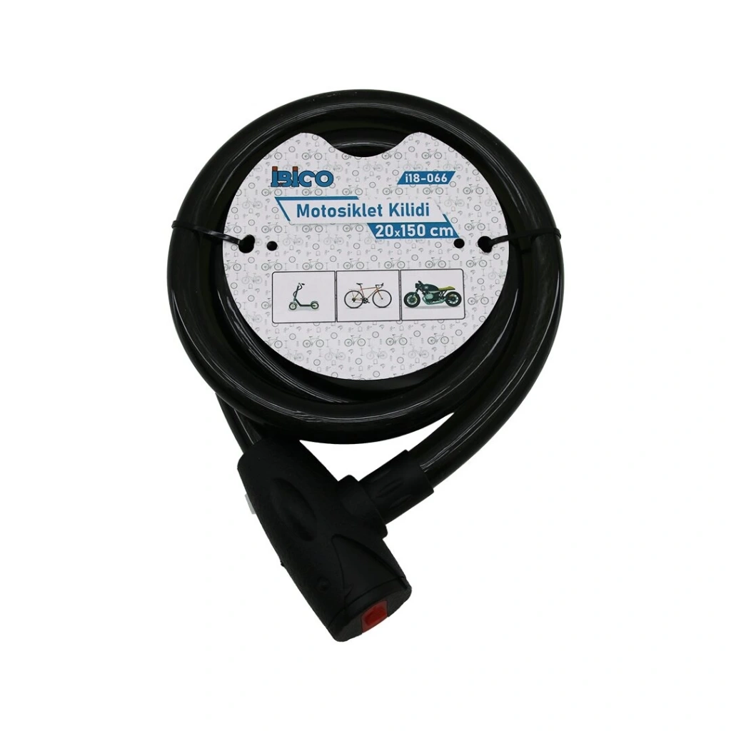 ANAHTARLI AÇ-KAPA KİLİT KAPAKLI MOTOR - BİSİKLET KİLİT ÇELİK TEL SİYAH ŞEFFAF KILIF 20MMX150CM