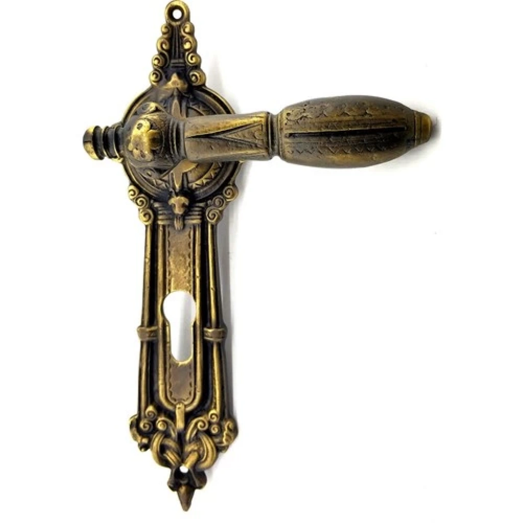 Antika Tarz Dekoratif Pirinç Şato Model Yale, Dış Kapı Kolu - 262X83 Mm, Antik