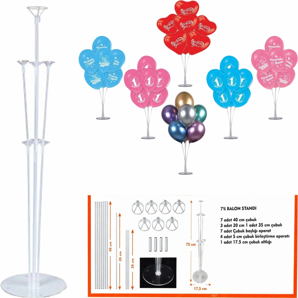 Balon standı uzunlu kısalı 7 çubuğa sahiptir