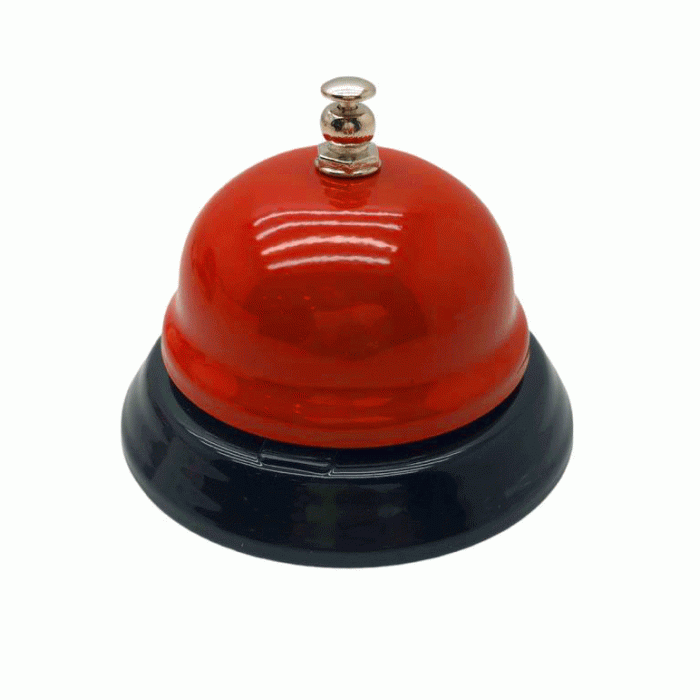 BÜYÜK TUTMALI - SALLAMALI RENKLİ METAL RESTORANT OTEL ZİLİ ÇAP: 7.5CM - PLS.SAPLI BOY: 13.5CM (5148)