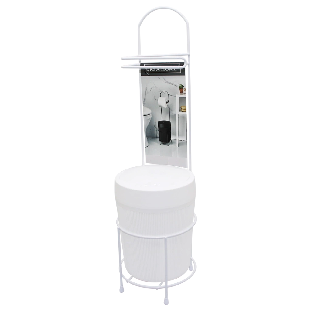 BEYAZ METAL AYAKLI WC KAĞITLIK YUVARLAK PLASTİK KOVALI