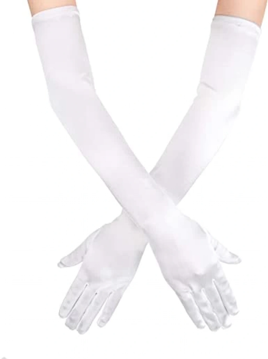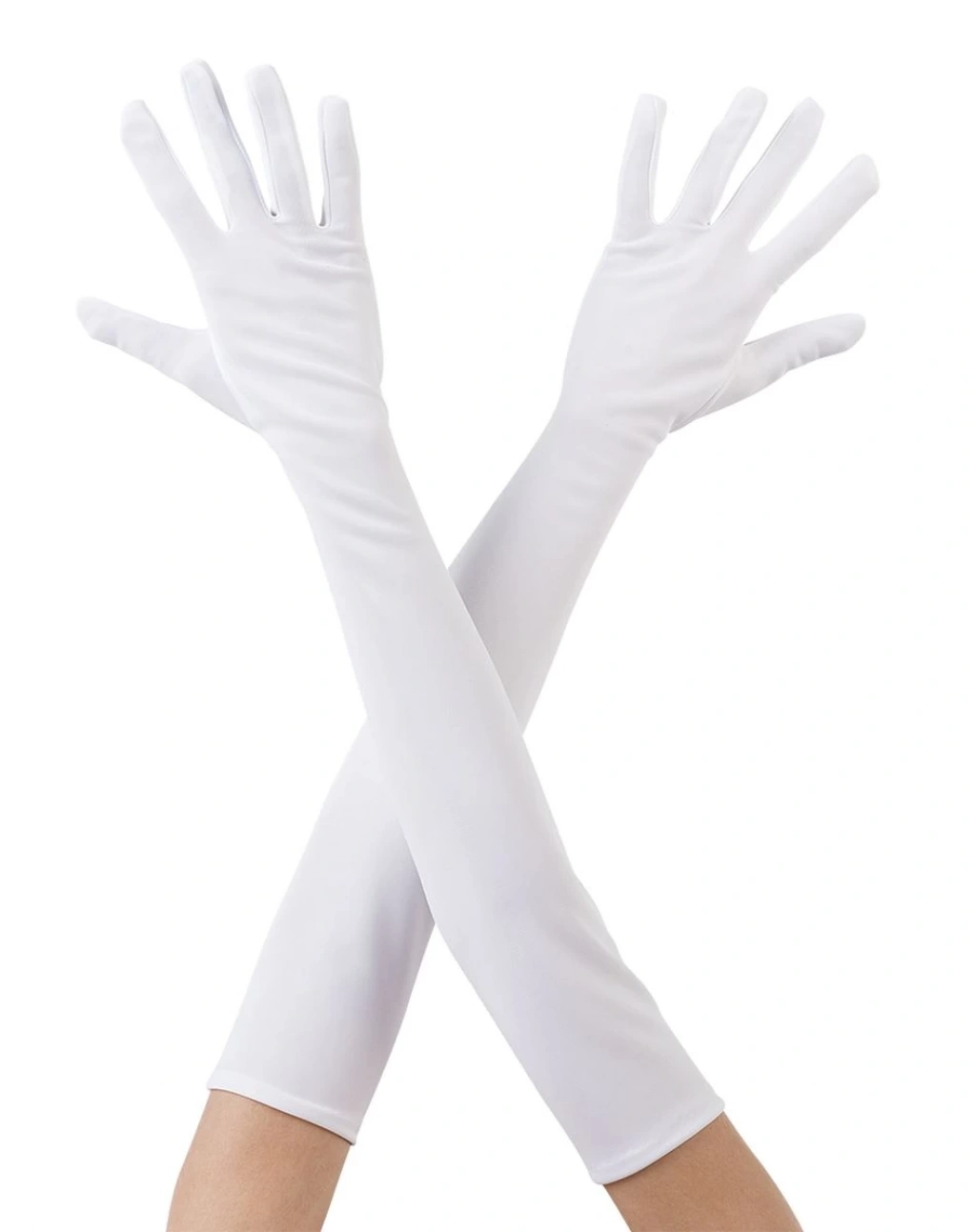 Beyaz Renk Dirseğe Kadar Uzun Kumaş Eldiven 40 cm (5148)
