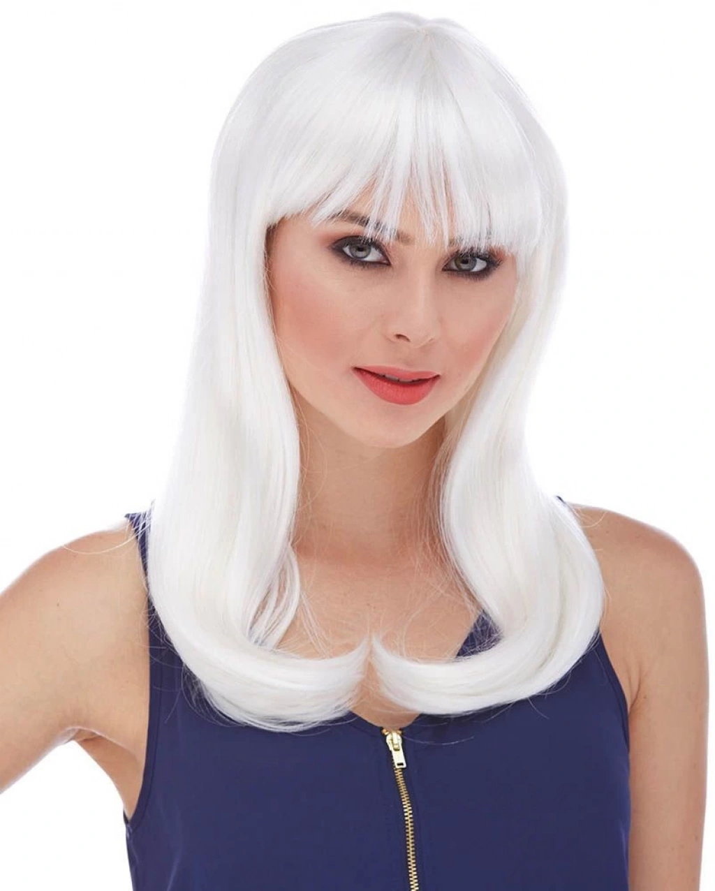 Beyaz Renk Uzun Düz Parti Peruğu (5148)