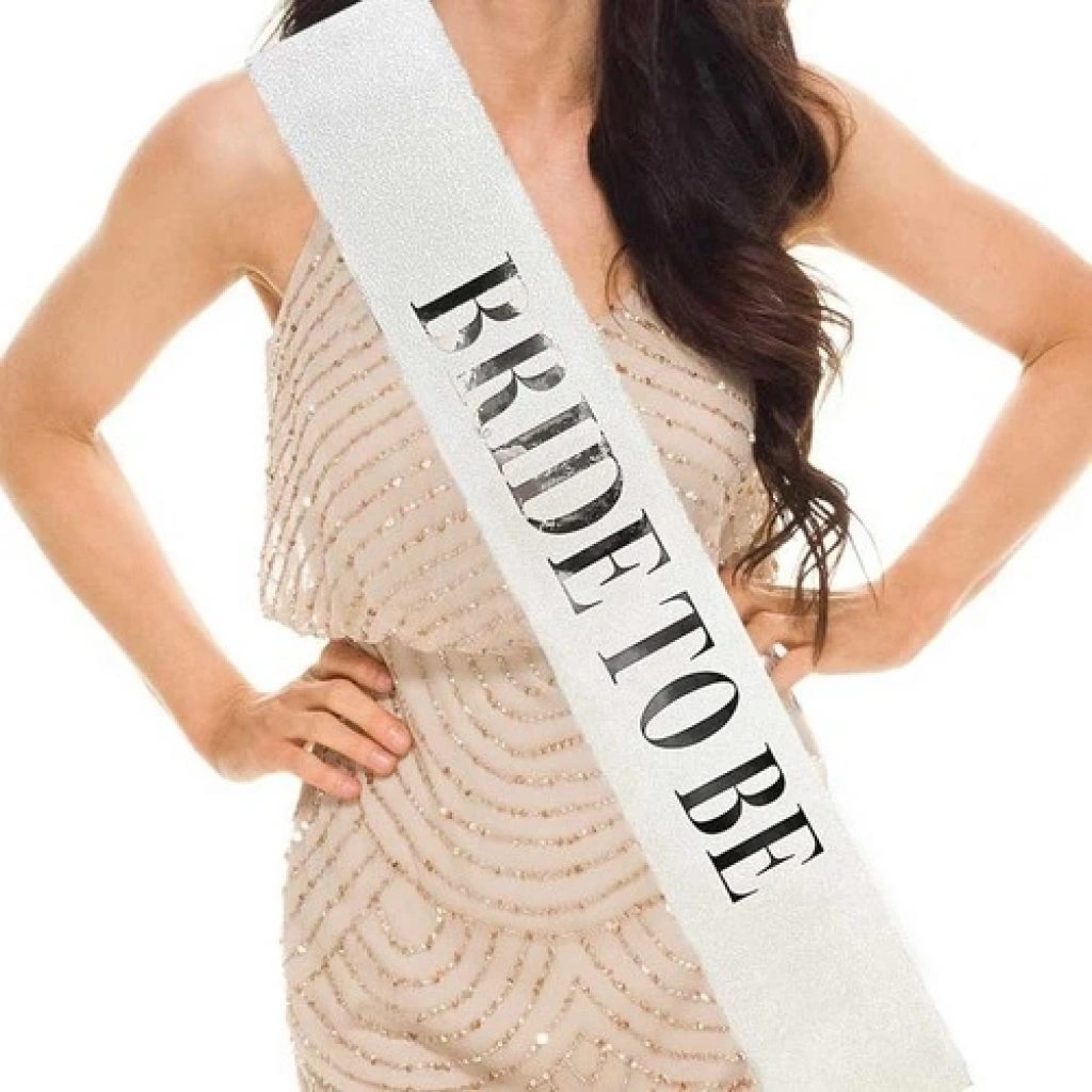 Beyaz Üzeri Gümüş Büyük Bride To Be Yazılı Simli Işıltılı Kuşak Kemer 10X80 cm