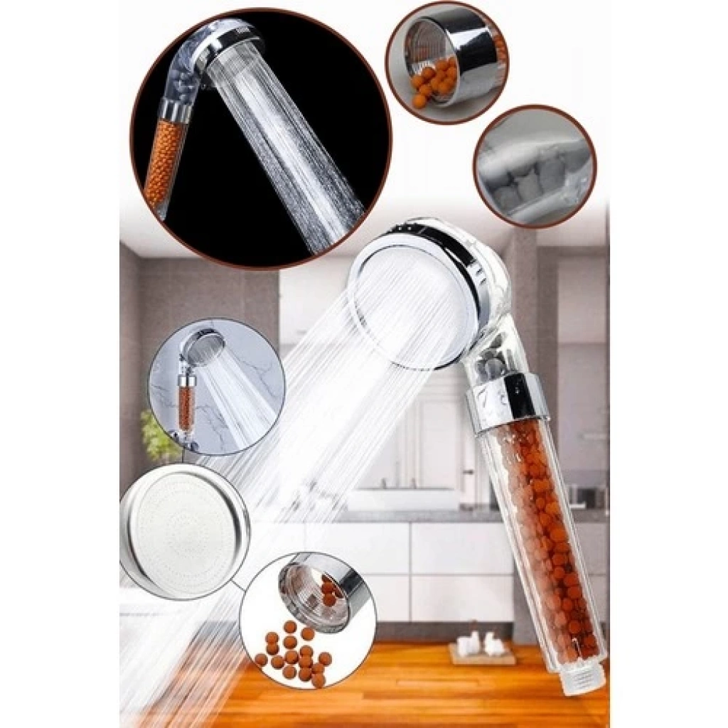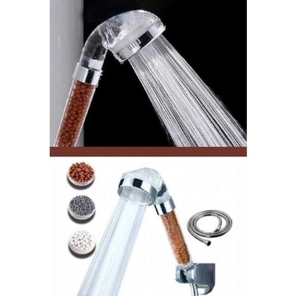 Filtreli ve Su Tasarruflu Arıtmalı Duş Başlığı Seti Boncuklu Başlık Hortum ve Mafsal Set