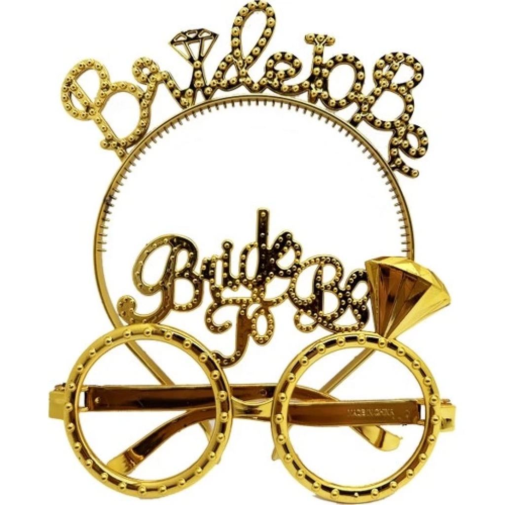 Bride To Be Yazılı Taç ve Bride To Be Yazılı Gözlük Seti Altın Renk