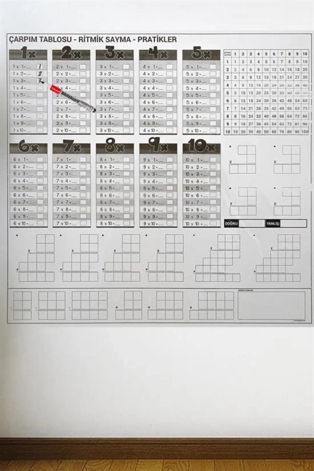 105 x 100 cm Çarpım Tablosu üzerine yazı yazılabilir, silinebilir.