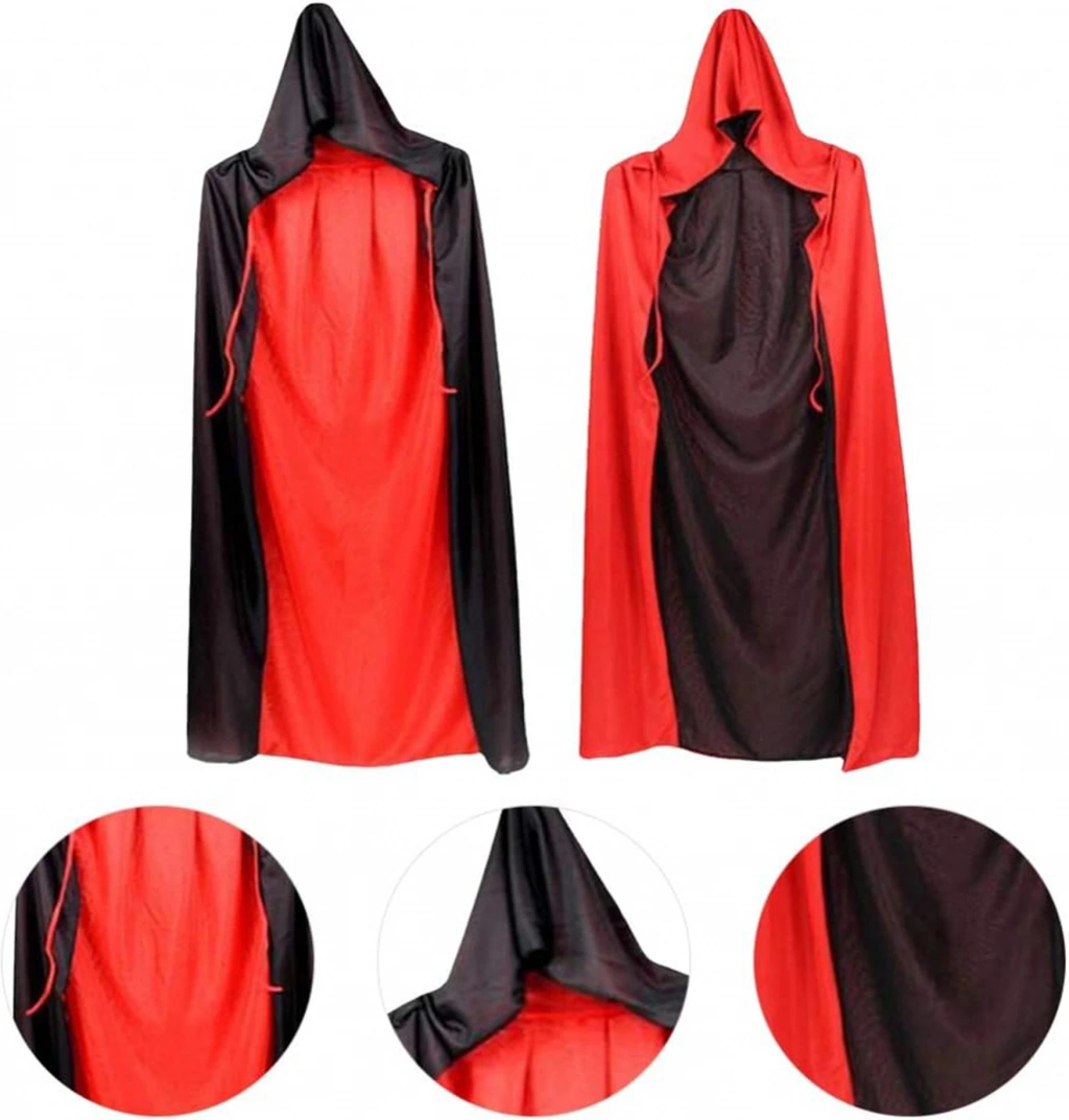 Çift Taraflı Kullanılabilir Siyah Kırmızı Kapişonlu Pelerin 140 cm Yetişkin, kostüm partileri, cosplay veya diğer özel günlerde eğlenceli ve gizemli bir görünüm elde etmek isteyenler için mükemmel bir seçimdir. Siyah ve kırmızı olmak üzere iki farklı rengi ile kullanılabilen bu pelerin, size birçok farklı kostüm seçeneği sunar. Kapüşonu ve uzun boyu ile de gizemli bir hava katacaktır.