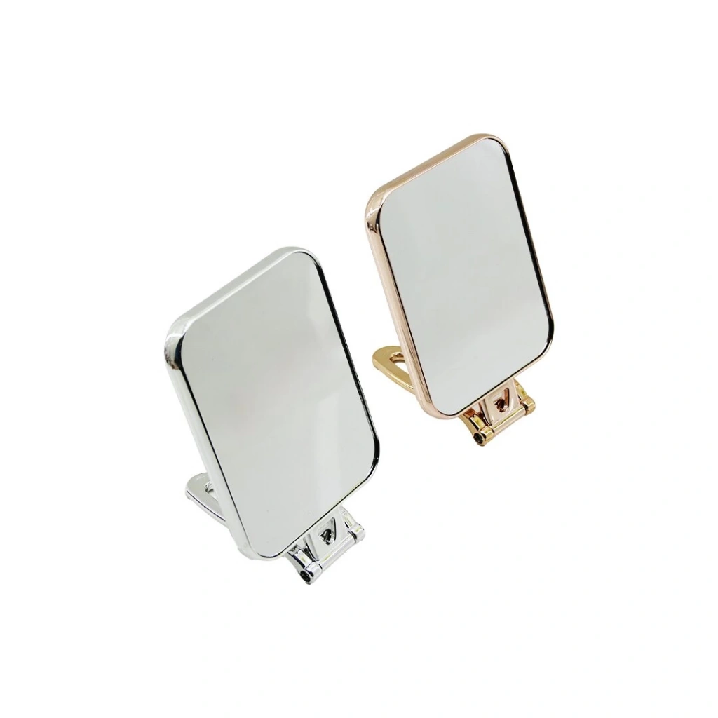 Dikdörtgen 15x11.5cm Makyaj Aynası Çift Taraflı Bronz - Gümüş Pls.çerçeve Katlanır Ayaklı (5148)