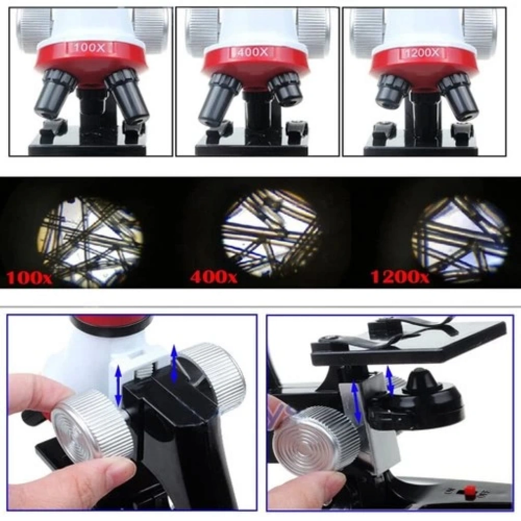 Eğitici Mikroskop Kiti Zoom LED Işıklı 100X 400X 1200X ST1200X