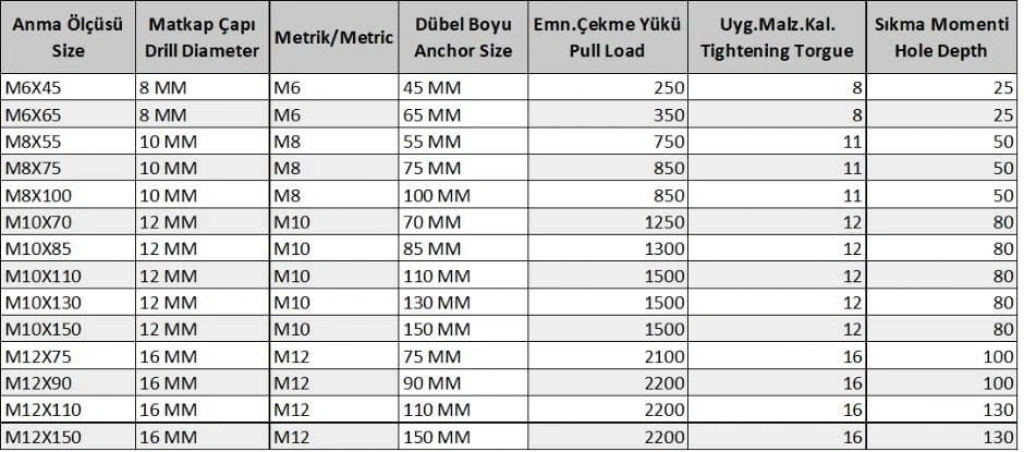 Ennalbur Gömlekli Çelik Dubel M6X65 (5 Adet)