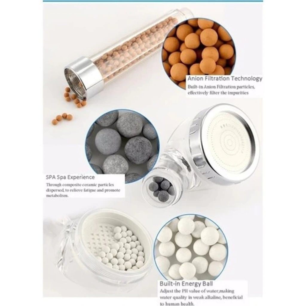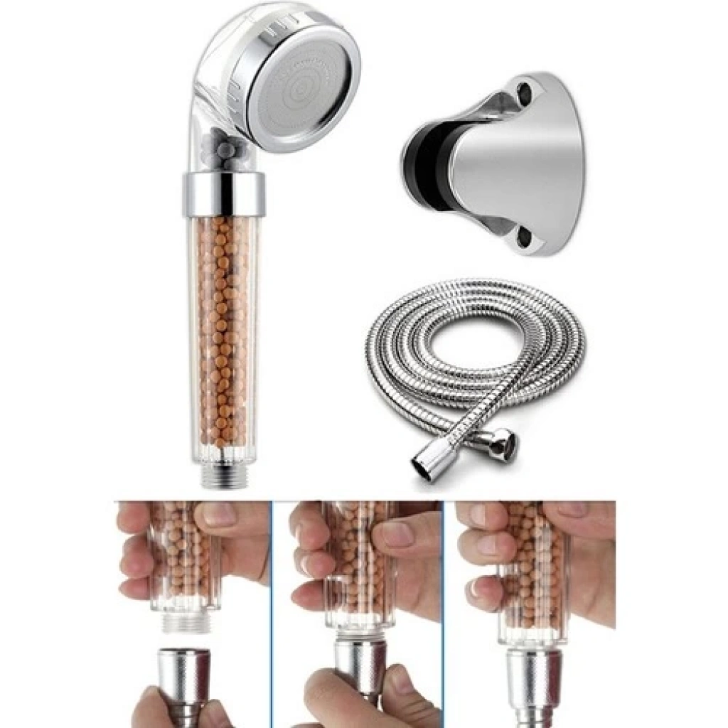 Filtreli ve Su Tasarruflu Arıtmalı Duş Başlığı Seti Boncuklu Başlık Hortum ve Mafsal Set
