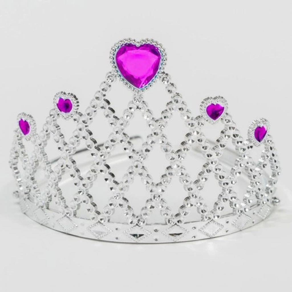 Fuşya Kalpli Gümüş Renk Kraliçe Tacı Prenses Tacı