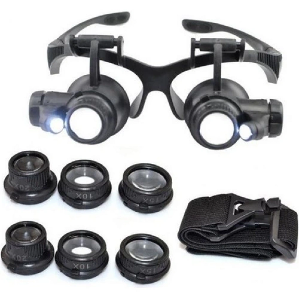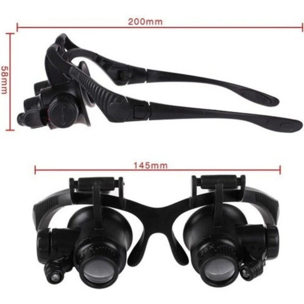 Gözlük Modeli 10X 15X 20X 25X Lens 2 LED Işıklı Büyüteç 9892G