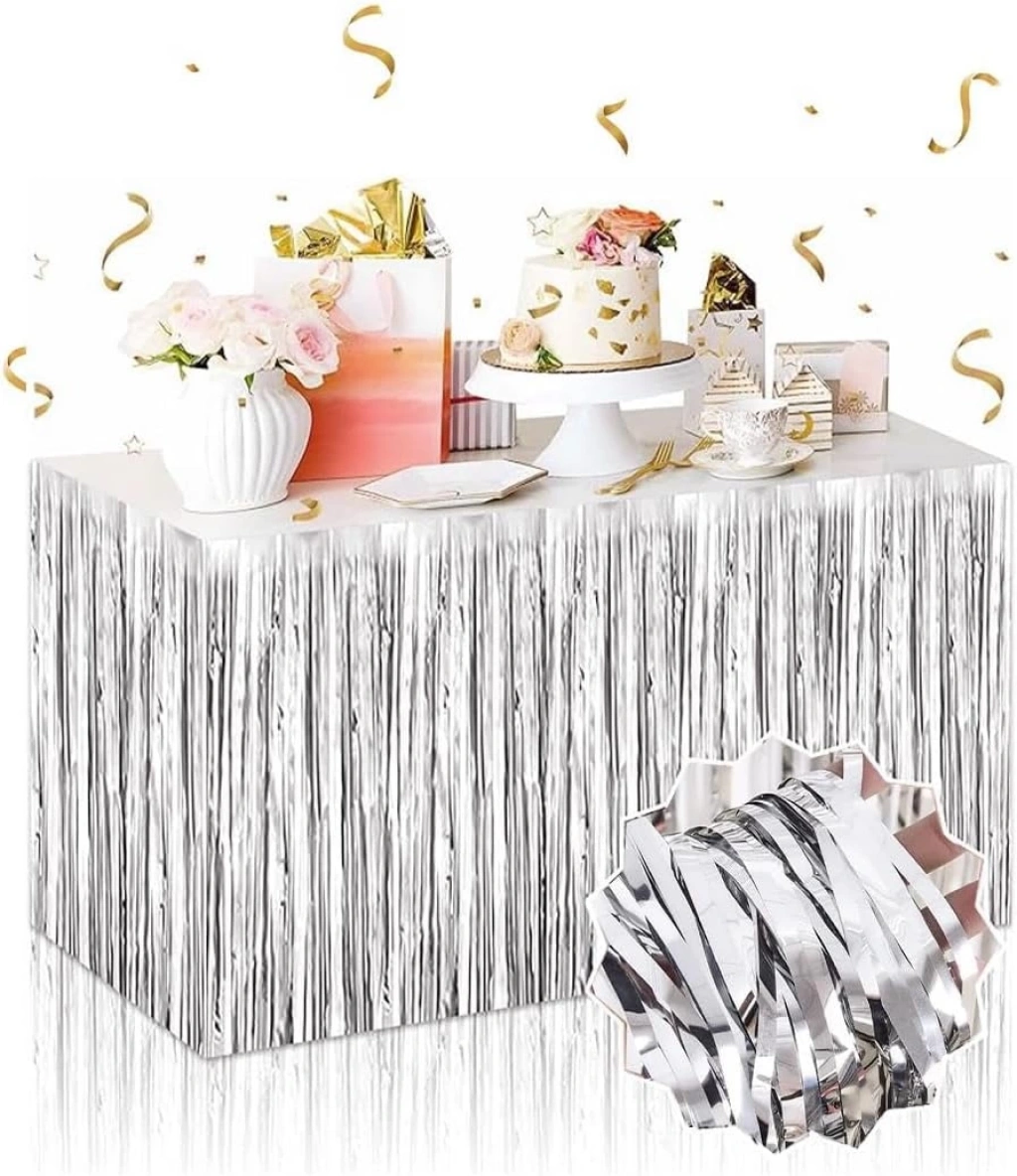 Partilerinize ve özel davetlerinize göz alıcı bir ışıltı katın! Ekstra parlak metalik folyo yapısıyla dikkat çeken bu gümüş masa eteği, masa kenarlarını şık bir şekilde süsler. 275x75 cm ölçüsündedir ve kendinden yapışkanlı yapısı sayesinde uygulaması son derece kolaydır.