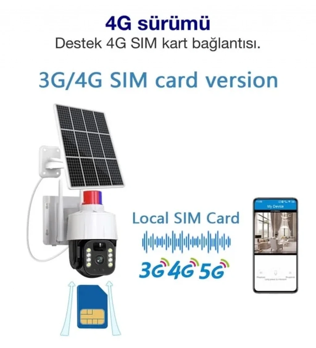 7/24 Kayıt Alabilen 4g Sim Kartlı Solar Güneş Enerjili Kamera Türkçe App