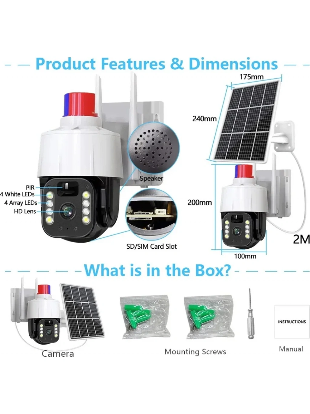 CMR46 Güneş Panelli Sim Kart Ile Çalışan 4g+ Wi-Fi 5mp Outdoor Dış Mekan Güvenlik Kamerası